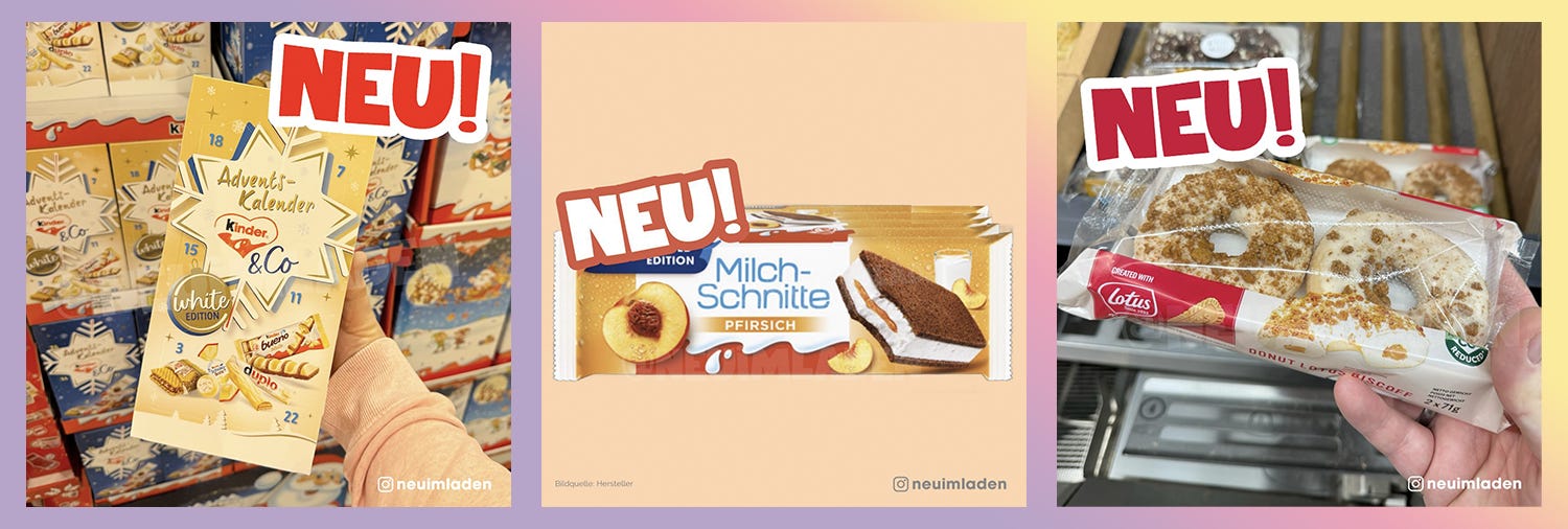 Sobald die Nikoläuse aus Schokolade reduziert wurden, geht es los: die ganzen Leerflächen werden gefüllt und in der ersten Januar-Tagen warten dann schon ganz viele Sonder-Aufsteller mit den ersten Foodnews im Supermarkt auf uns.