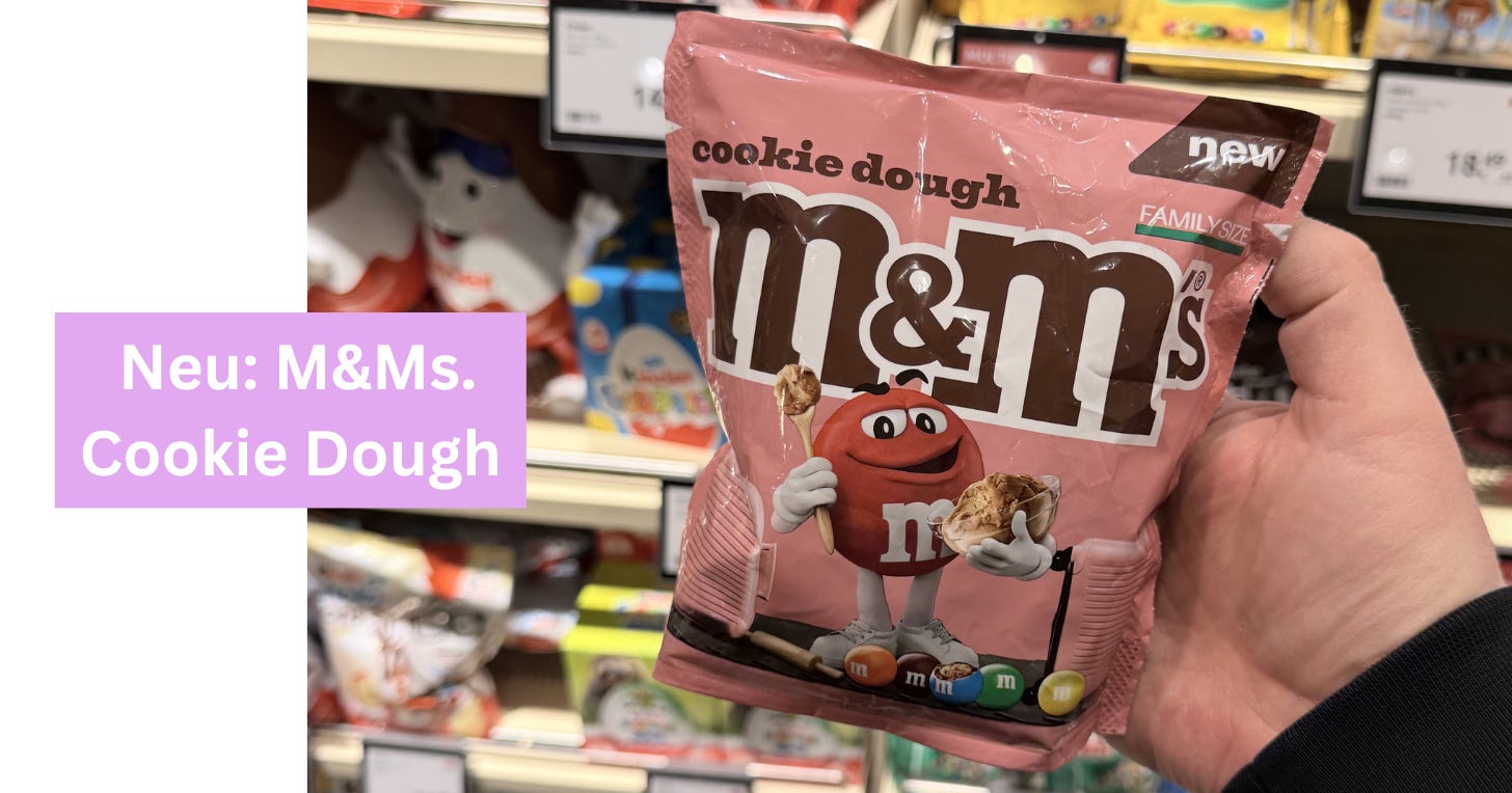 M&Ms Cookie Dough kommt nach Deutschland! Wie nice ist das denn?! Schon im April werden die kleinen Schoko-Linsen mit Keksteig-Füllung überall erhältlich sein. Ich habe sie schon im Duty-Free vom Flughafen entdeckt… aber 10€ war mir der Spaß dann doch nicht Wert. Die Meinungen sind bei diesen Schokolinsen sehr gespalten… einige feiern sie absurd, andere sind enttäuscht. Müssen wir uns wohl selbst ein Bild von machen, oder? Ich werde auf jeden Fall berichten, sobald ich sie zu einem humanen Preis im Supermarkt entdeckt habe.